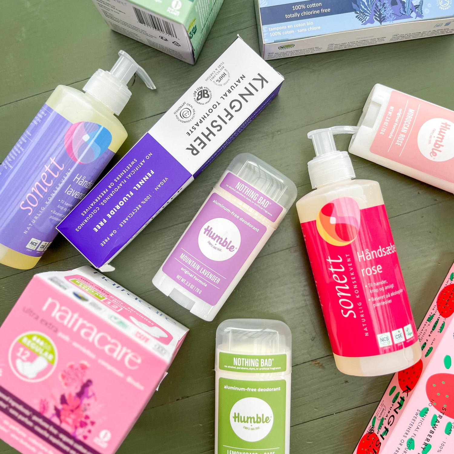 Sjå utvalet vårt av økologisk & trygge produkt som såper, deodorant, bind & tamponger, tannkrem og meir!