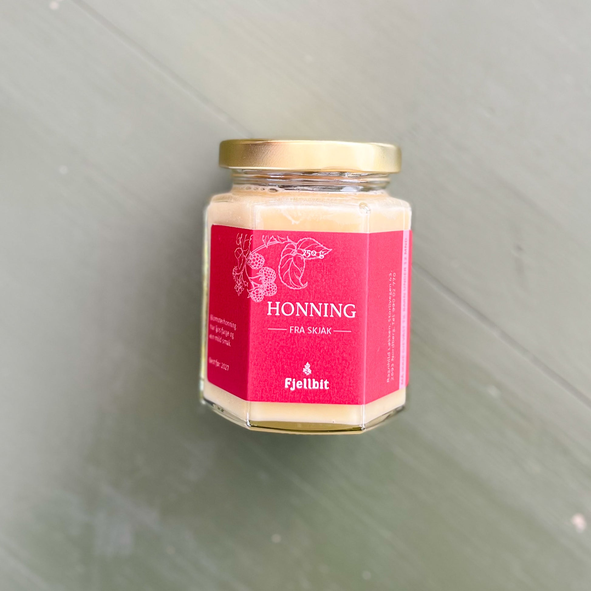 Nyt ekte norsk honning frå Fjellbit i Skjåk – ein blomsterhonning med høgt innslag av norske villbringebær.