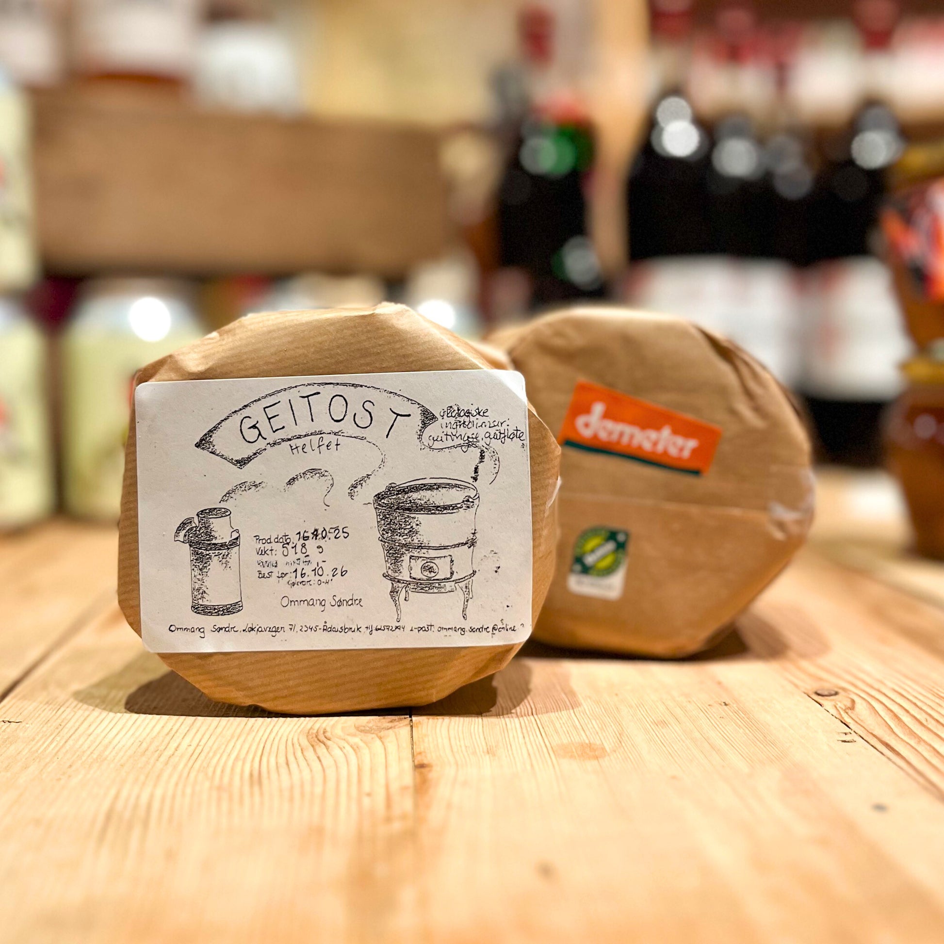 Denne ekte geitosten er laga av økologisk myse og fløyte av geit. Kokinga skjer ved vedfyring, så ein får ost med god smak!