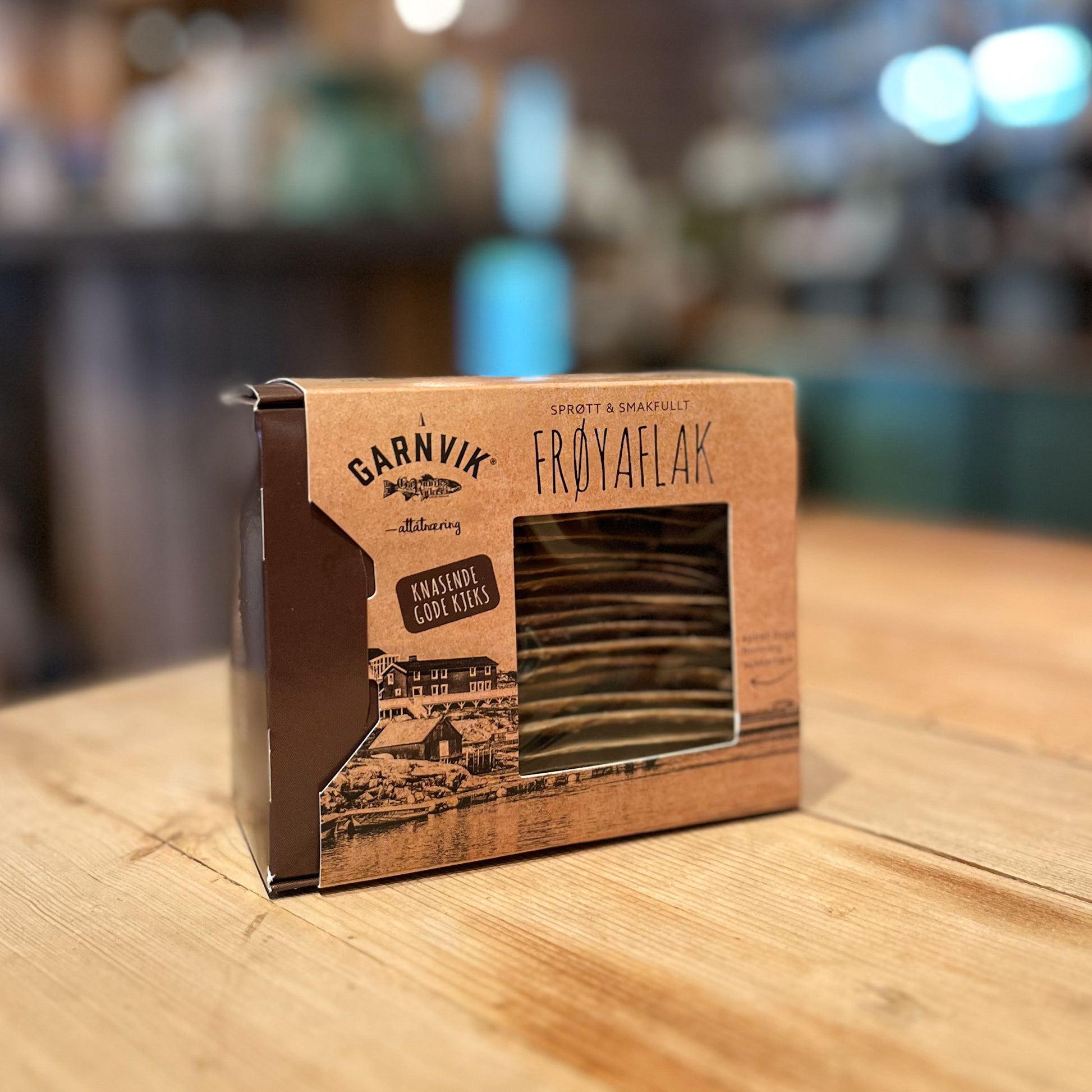 Handlaga kjeks av spiret bygg, hvetemel og rug, med ein dæsj havregryn og solsikkekjerner. Med ein smak av malt frå lokal mesk etter ølbrygginga, samt lokal honning og sukkertare som er hausta på Frøya!