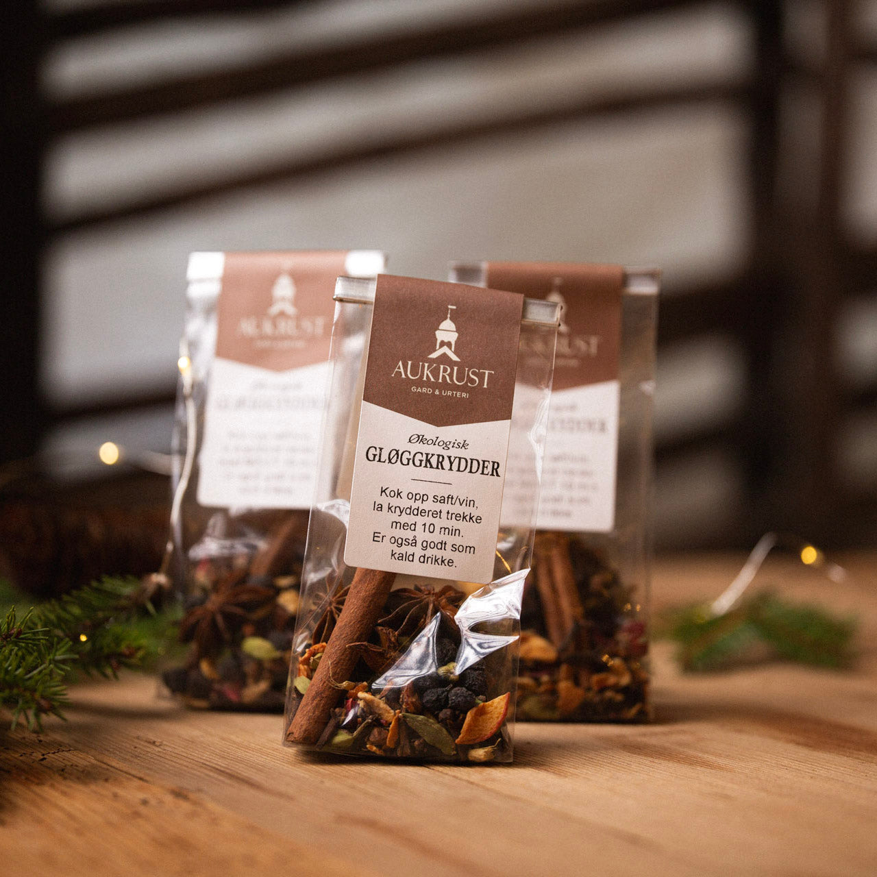 Økologisk krydderblanding frå Aukrust Gard og Urteri i Lom.