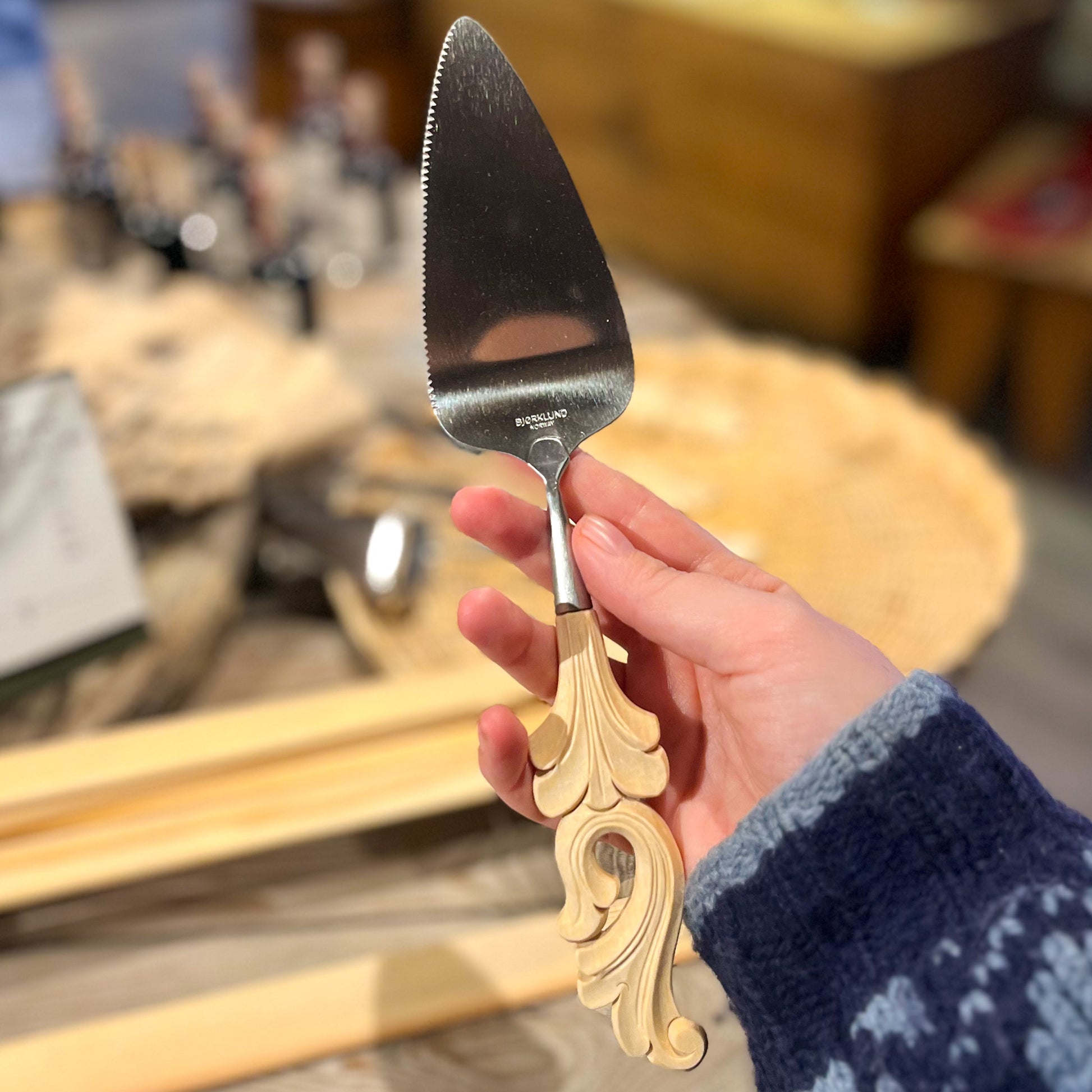Kakespade handlaga av treskjærar Geir Aadne Lindsø her i Lom.