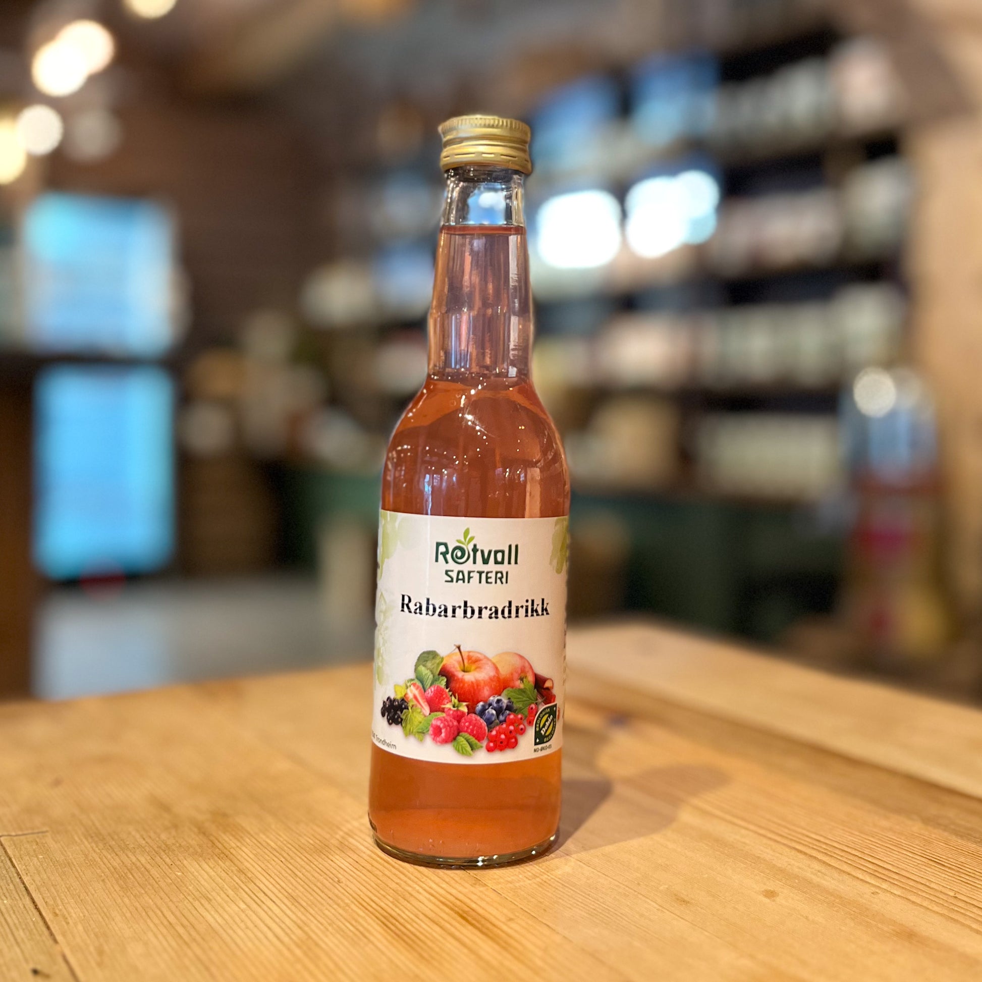 Ingrediensar: Kaldpressa økologisk rabarbrasaft, vatn, 7g økologisk rårørsukker