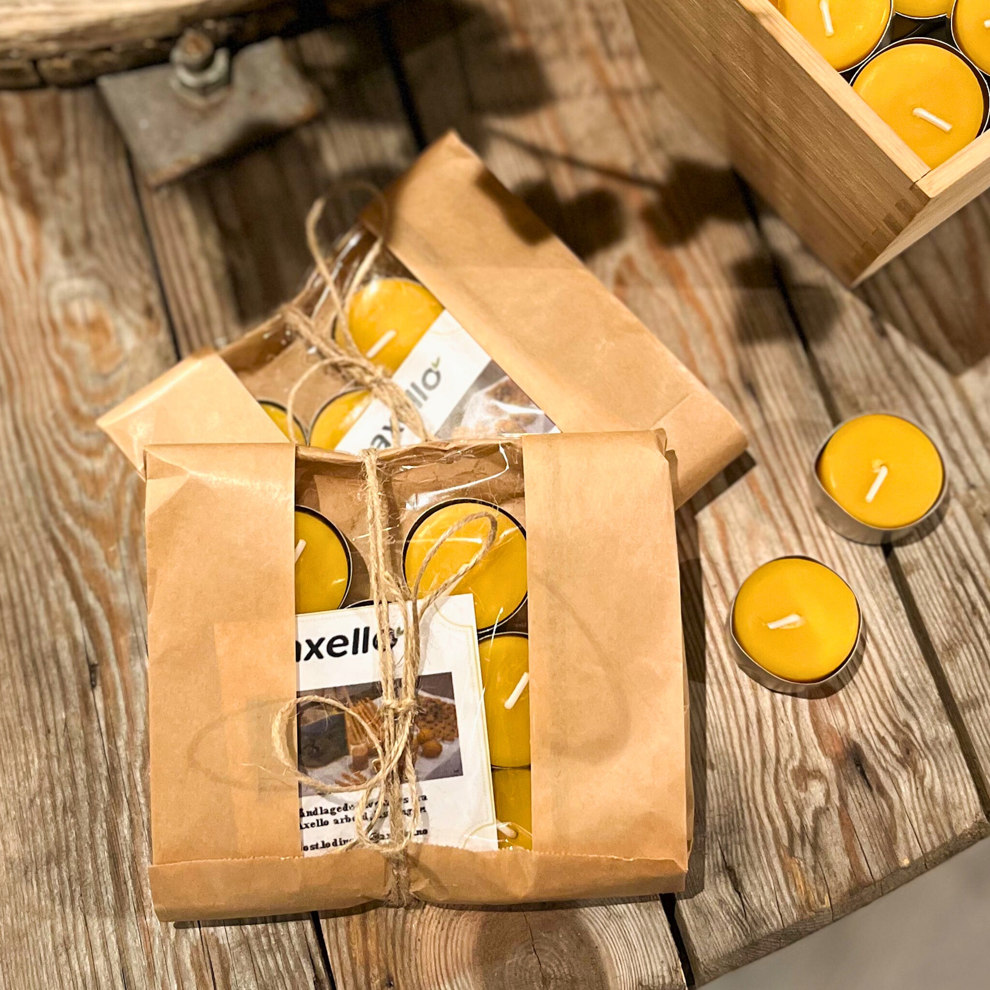 Pose med 10 stk telys av bivoks i aluminiumkopp
